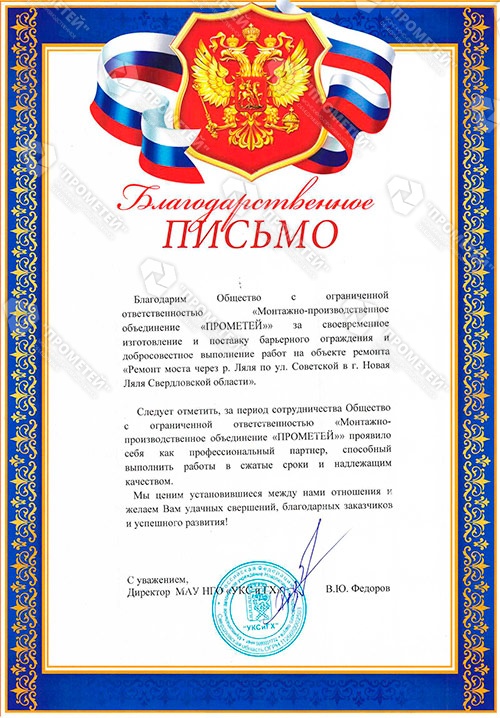 Особенно приятно было получить благодарственное письмо на имя МПО "Прометей" за добросовестную и своевременную работу.